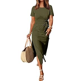 • ANRABESS Women’s Summer Short Sleeve Crewneck T Shirt Maxi Dress Tie Waist Casual Slim Fit Slit Beach Dresses