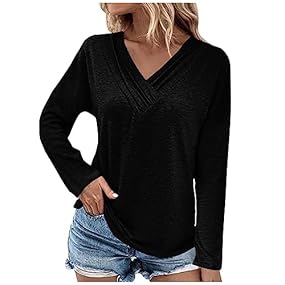 • LUUSMM Womens Short/Long Sleeve Blouses Fall Fashion Casual Loose Fit T Shirts Button Decor Solid Color Comfy Tunic Tops