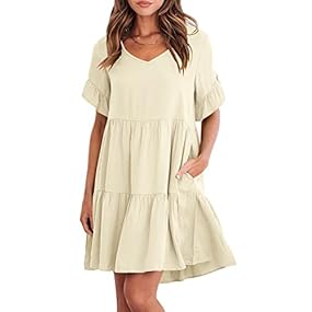 • ANRABESS Women’s Summer Casual V Neck Babydoll Dress Ruffle Short Sleeve Tiered A-Line Flowy Mini Beach Dress